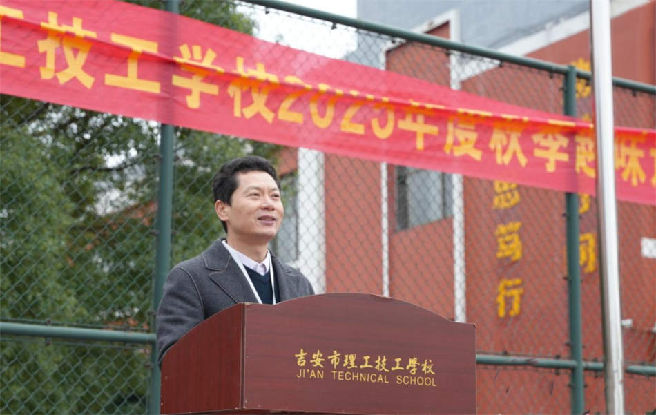 吉安市理工技工學(xué)校校長賴赴權(quán)的講話,為寒冷的操場注入暖意。他望著操場上整齊列隊(duì)的同學(xué)們說道:“趣味運(yùn)動會不是簡單的‘玩’,而是‘德技兼修’的實(shí)踐課。希望運(yùn)動員們嚴(yán)格遵守比賽規(guī)則,秉承‘友誼第一、比賽第二’的精神,在趣味中釋放壓力,在協(xié)作中收獲成長;希望裁判員們文明執(zhí)裁,公正執(zhí)裁,更期待所有師生共同努力,讓本屆運(yùn)動會既賽出技能水平,又賽出團(tuán)結(jié)溫度,最終取得圓滿成功!”講話結(jié)束,學(xué)生們報(bào)以熱烈掌聲,掌聲在寒風(fēng)中顯得格外溫暖。